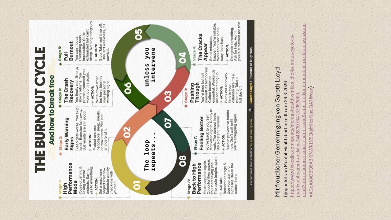 Brennen für den Job bis zum Burnout. Dann Erholung in einer Klinik, üblicherweise bis zu 6 Wochen, aber irgendwann kommt der Tag, an dem der Klinikaufenthalt zu Ende geht. Dann gibt es idealerwei...